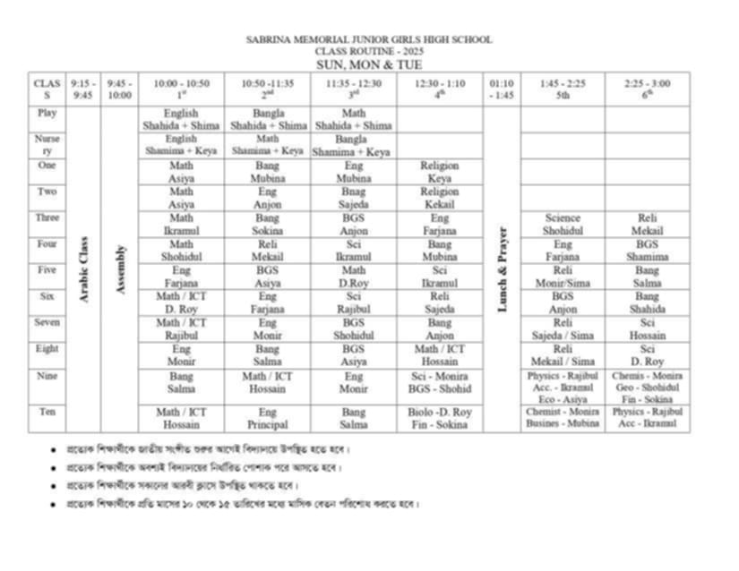 Class Routine 2025